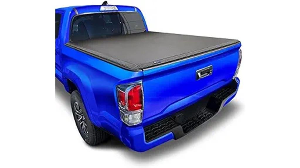 If you’re a Tacoma owner with a Gen 3 Short Bed 5 looking for a versatile tonneau cover, the Softopper Truck Top, Model TC60B in Black, might be your ideal match. Weighing just 31.8 pounds, this roll-up cover, crafted from durable Sailcloth fabric and aluminum, offers a balance of open bed flexibility and hard top protection. You’ll appreciate the clear windows for visibility and its weather resistance against harsh elements. Installation’s usually straightforward, though some report fitting issues in cold weather. It keeps gear mostly dry, despite minor leaks during heavy rain.